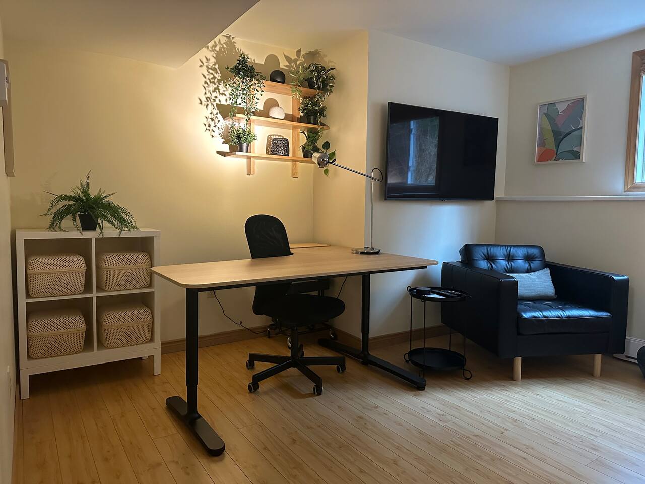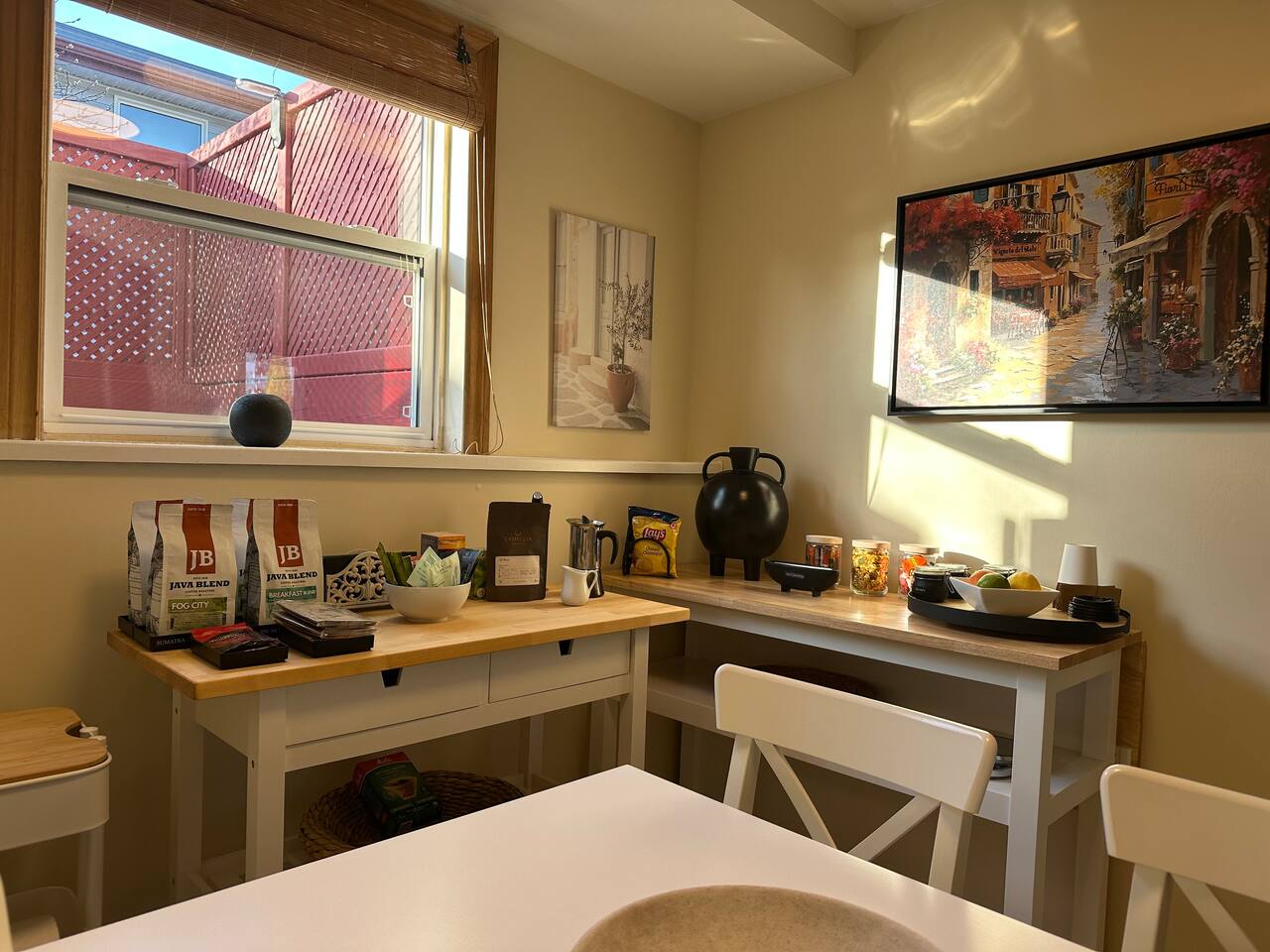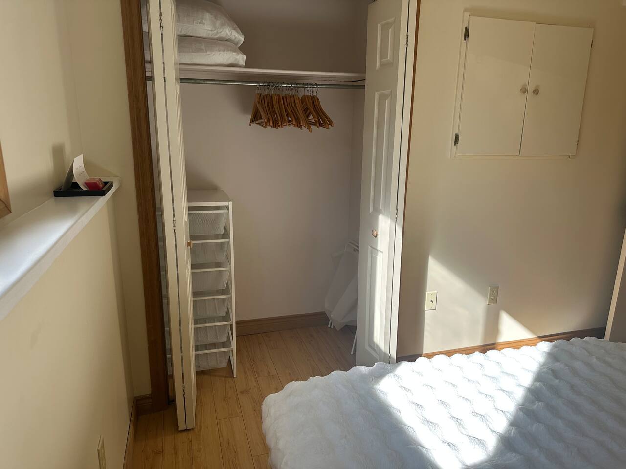 Guests will have private access to the entire ground-floor apartment, including a private patio. Entry is seamless with a smart lock for self check-in. You are also welcome to enjoy the serene, shared backyard and professionally landscaped gardens. Free, dedicated parking is available on-site for one vehicle. In summer, or when there is no snow in the spot, two smaller vehicles can fit in the space.